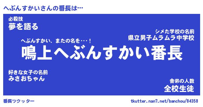 | ヘコむあだ名 | 『へぶもー』『酢こんぶ』『へぶ太郎』 |