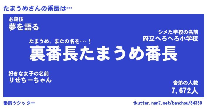 | ファンタジー風あだ名 | 『タマフェル』『エターナルタマウメー』 |