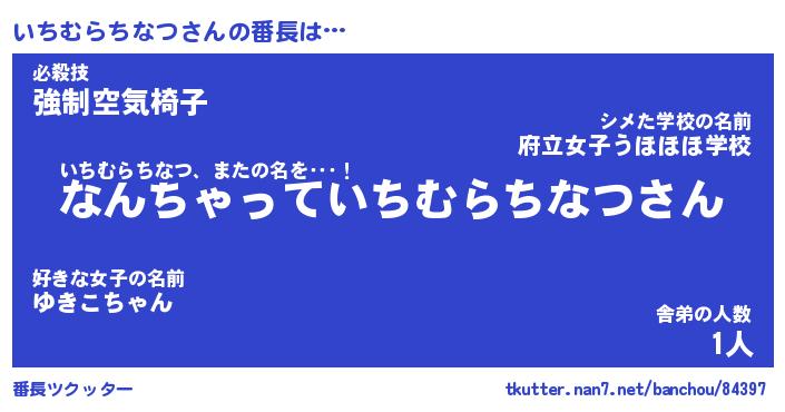 | 伝説のあだ名 | 『伝説のスナイパーいちむらちなつ』 |
