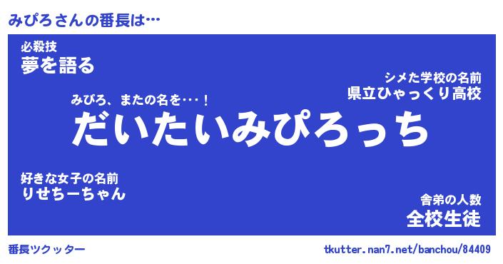 | 肩書あだ名 | 『みぴろ社長令嬢』『みぴろ総理大臣』 |