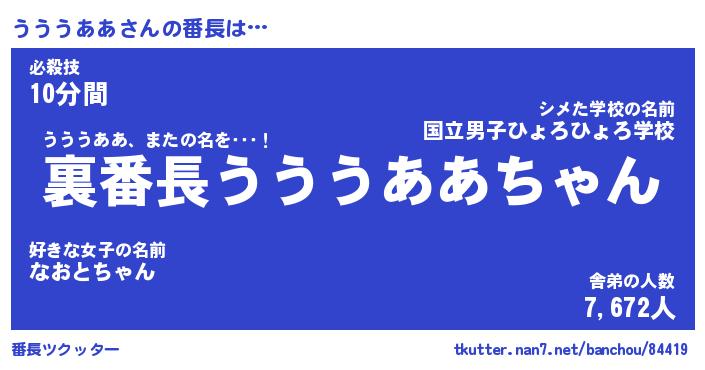 | 2回繰り返すあだ名 | 『うううう』『うううう』『おらおら』 |