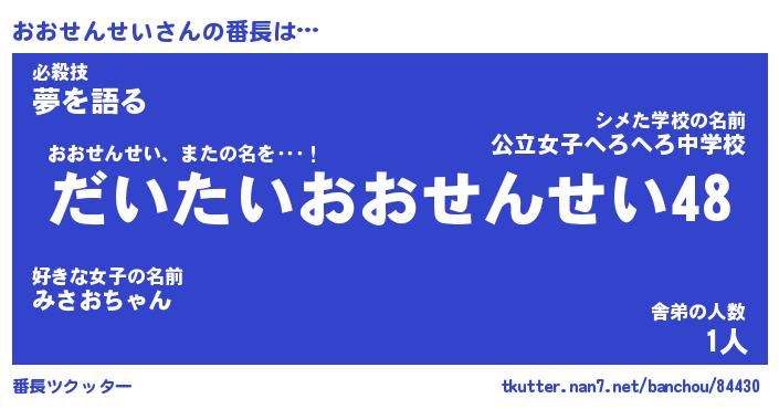 | 肩書あだ名 | 『おおせんせい店長』『おおせんせい担任』 |