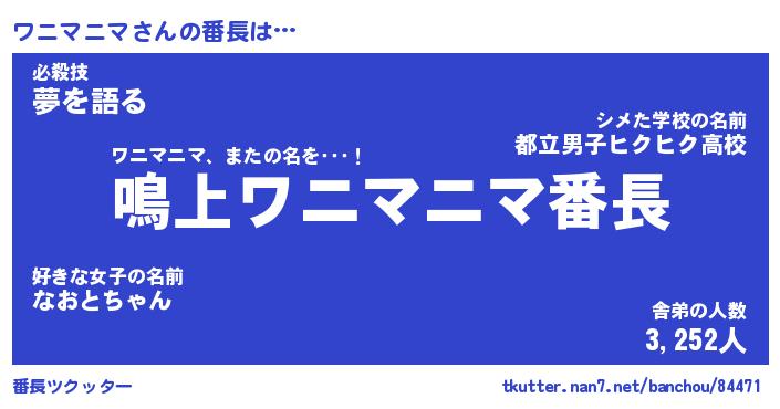 | ヒーロー風カッコイイあだ名 | 『スーパーワニマニマ』『銀牙騎士ワニ』 |