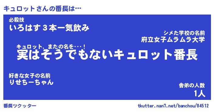 | ヒーロー風カッコイイあだ名 | 『スーパーキュロット』『幻影騎士キュ』 |