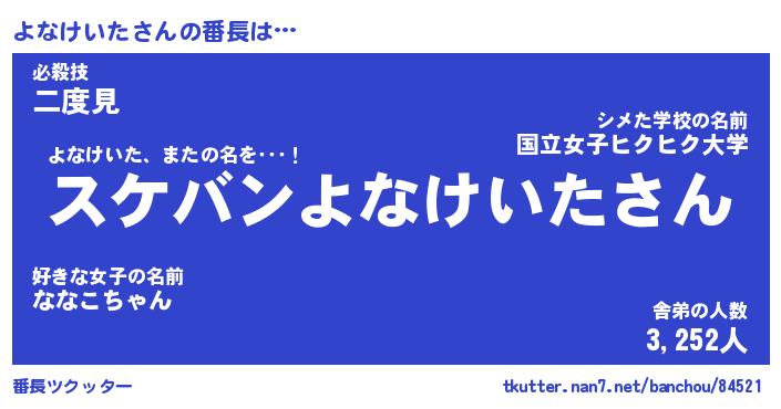 | 肩書あだ名 | 『よなけいた社長』『よなけいた国家主席』 |