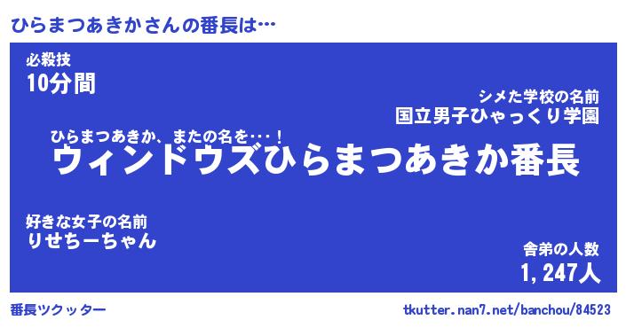 | 伝説のあだ名 | 『伝説のスナイパーひらまつあきか』 |