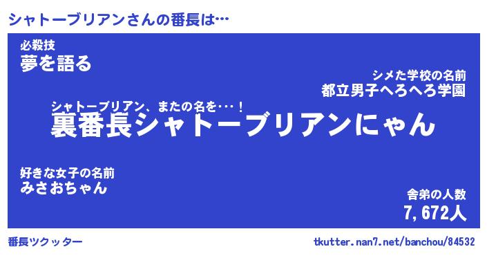 | 欧米人風あだ名 | 『マイケルシャトーブリアン』 |