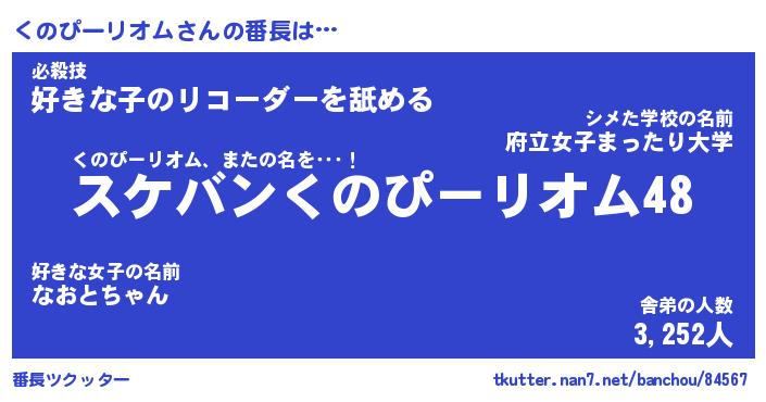 | ヘコむあだ名 | 『くのにゅー』『なまこ酢』 |