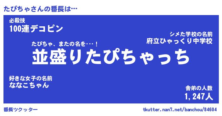 | 意味不明あだ名 | 『ペロリンたぴちゃ』『永久保存たぴちゃ』 |