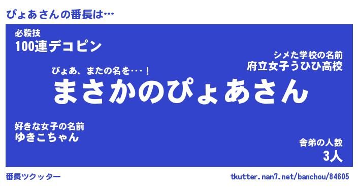 | ポケモン風あだ名 | 『ピョチュウ』『ピョアダネ』 |
