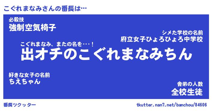 | 女子向けラノベタイトル風あだ名 | 『(仮)こぐれまなみのやんごとなき事情』 |