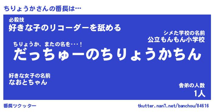 | ファンタジー風あだ名 | 『チリフェル』『エターナルチリョウカー』 |