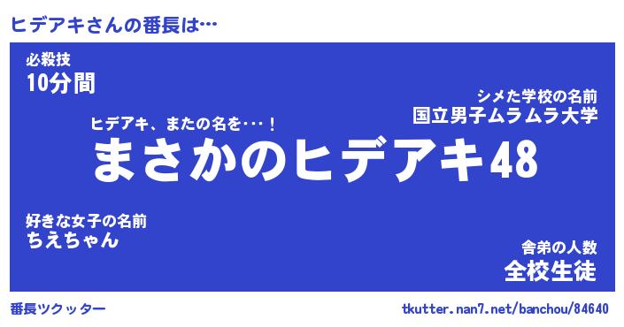 | 意味不明あだ名 | 『ペロリンヒデアキ』『永久保存ヒデアキ』 |