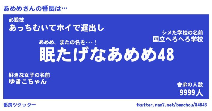 | ファンタジー風あだ名 | 『アメフェル』『エターナルアメメー』 |