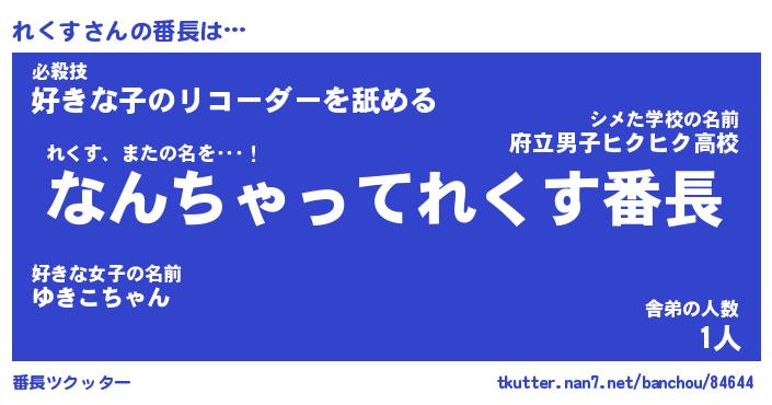 | 伝説のあだ名 | 『伝説のスナイパーれくす』 |