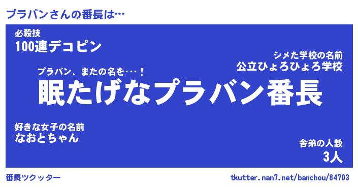 | ヒーロー風カッコイイあだ名 | 『スーパープラバン』『魔戒騎士プラ』 |