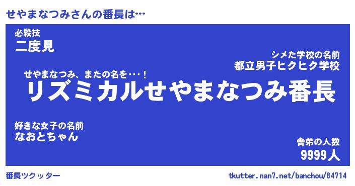 | ヒーロー風カッコイイあだ名 | 『スーパーセヤマナツミ』『天弓騎士セヤ』 |
