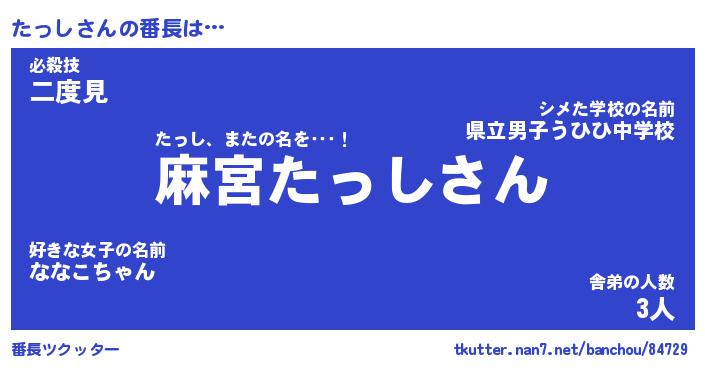 | ヒーロー風カッコイイあだ名 | 『スーパータッシ』『ウルトラたっしマン』 |