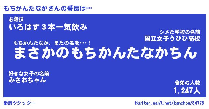 | 男性向けラノベタイトル風あだ名 | 『もちかんたなかの憂鬱』 |