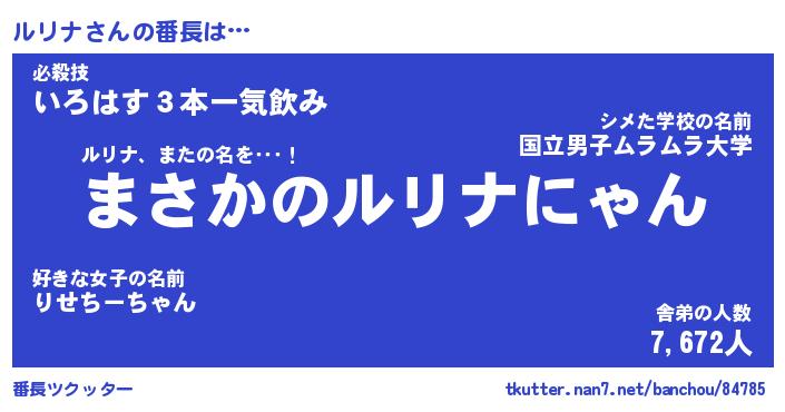 | 意味不明あだ名 | 『ペロリンルリナ』『ルリナフォーエバー』 |