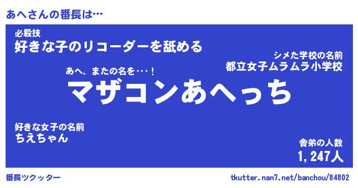 | ヒーロー風カッコイイあだ名 | 『スーパーアヘ』『ウルトラあへマン』 |