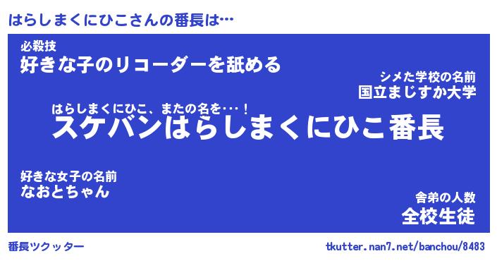 | 男性向けラノベタイトル風あだ名 | 『ハラシマクニヒコアートオンライン』 |