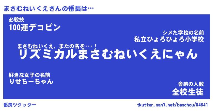 | ピコ太郎風あだ名 | 『マコ三郎』『ピマ一郎』『マサ六郎』 |
