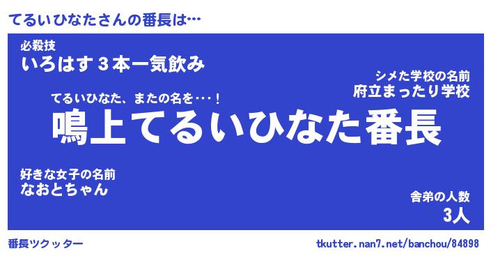 | ヒーロー風カッコイイあだ名 | 『スーパーテルイヒナタ』『魔戒騎士テル』 |