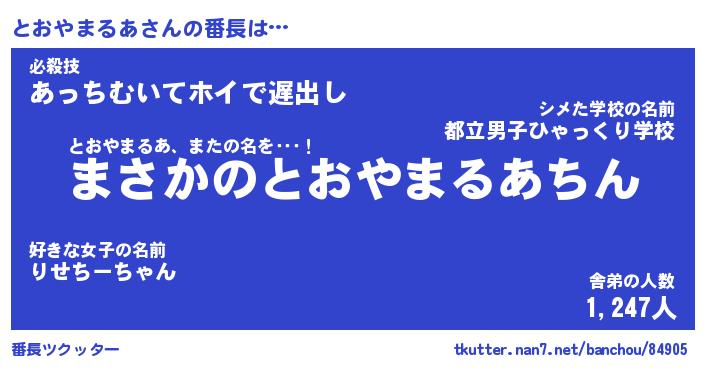 | 伝説のあだ名 | 『伝説のスナイパーとおやまるあ』 |