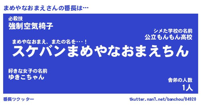 | ヒーロー風カッコイイあだ名 | 『スーパーマメヤナオマエ』 |