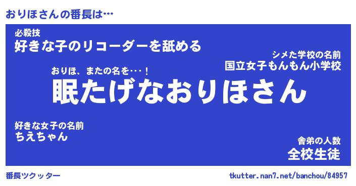 | 肩書あだ名 | 『おりほ社長』『おりほ国家主席』 |