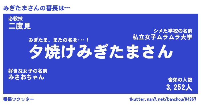 | 意味不明あだ名 | 『ペロリンみぎたま』『永久保存みぎたま』 |