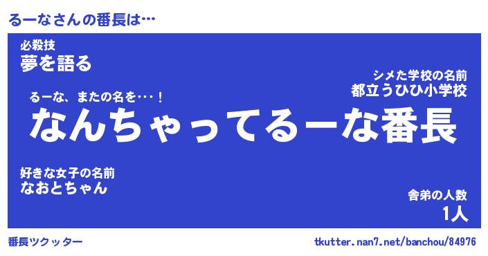 | ヘコむあだ名 | 『るーにゅー』『豆乳』『るーお』 |