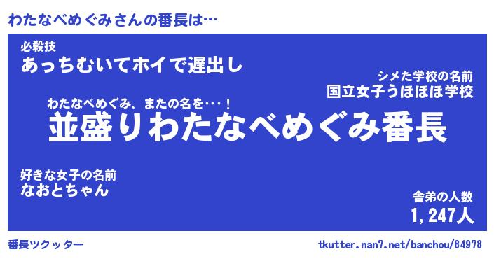 | 2回繰り返すあだ名 | 『わたわた』『わわたた』『けんけん』 |