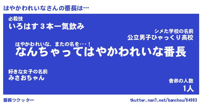 | ピコ太郎風あだ名 | 『ハコ八郎』『ピハ十郎』『ハヤ五郎』 |
