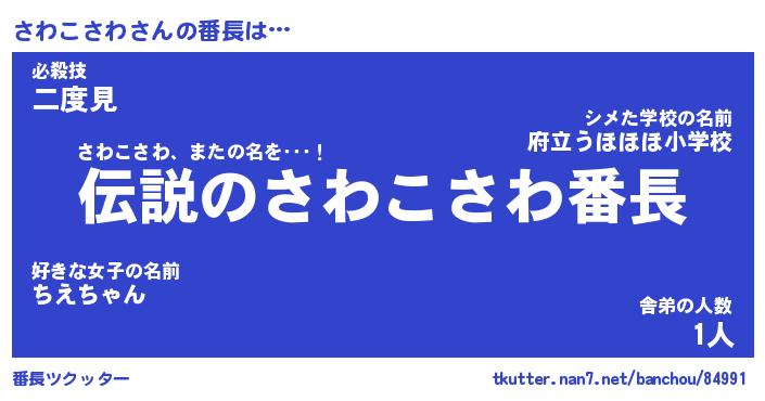 | ヒーロー風カッコイイあだ名 | 『スーパーサワコサワ』『黄金騎士サワ』 |