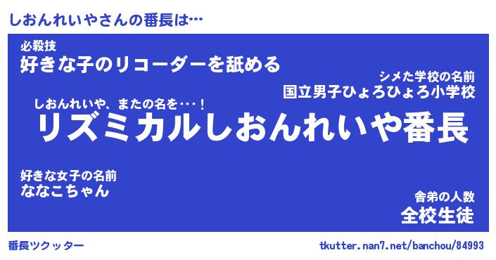 | 肩書あだ名 | 『しおんれいや店長』『しおんれいや先生』 |