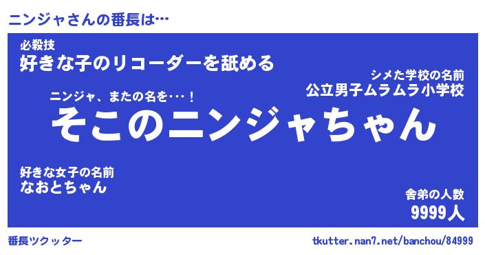 | 意味不明あだ名 | 『ペロリンニンジャ』『永久保存ニンジャ』 |