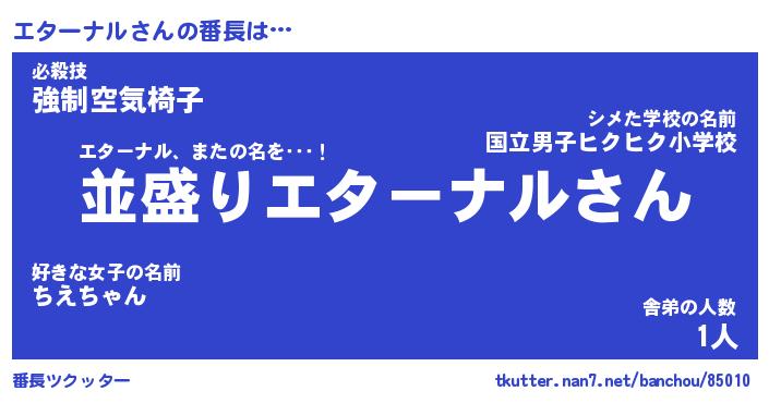 | ヒーロー風カッコイイあだ名 | 『スーパーエターナル』『黄金騎士エタ』 |