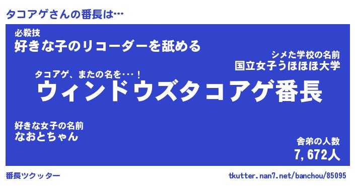 | 意味不明あだ名 | 『ペロリンタコアゲ』『永久保存タコアゲ』 |