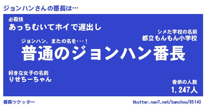 | ファンタジー風あだ名 | 『ジョフェル』『エターナルジョンハンー』 |