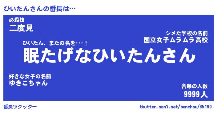 | ヒーロー風カッコイイあだ名 | 『スーパーヒイタン』『天弓騎士ヒイ』 |