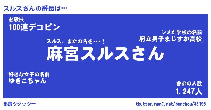 | ファンタジー風あだ名 | 『スルフェル』『エターナルスルスー』 |