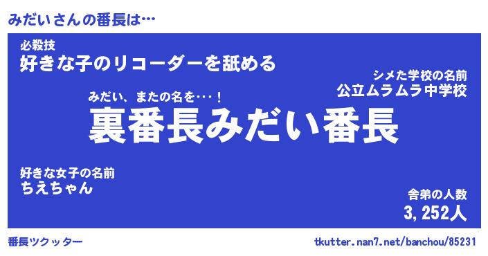 | ヒーロー風カッコイイあだ名 | 『スーパーミダイ』『ウルトラみだいマン』 |