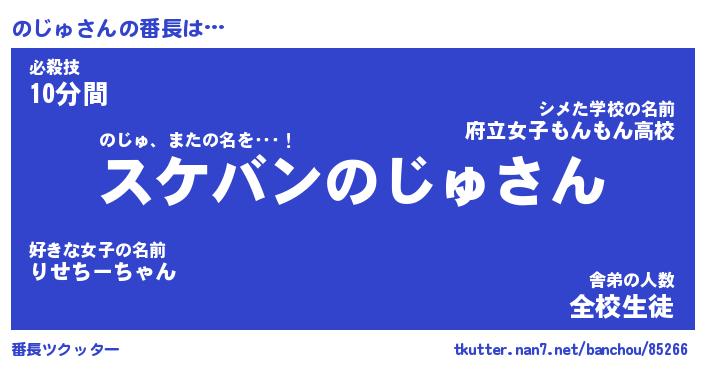 | 伝説のあだ名 | 『不死鳥のスナイパーのじゅ』 |