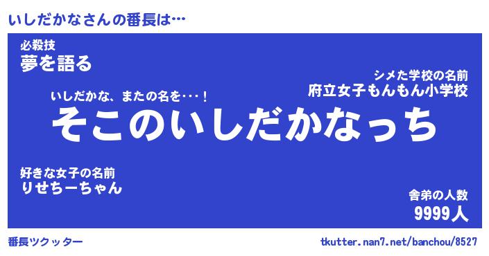 | ヒーロー風カッコイイあだ名 | 『スーパーイシダカナ』『天弓騎士イシ』 |