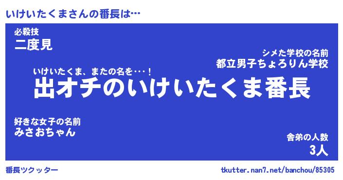 | 伝説のあだ名 | 『伝説のスナイパーいけいたくま』 |