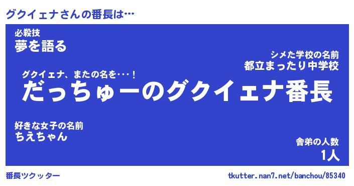 | 男性向けラノベタイトル風あだ名 | 『グクイェナの憂鬱』 |