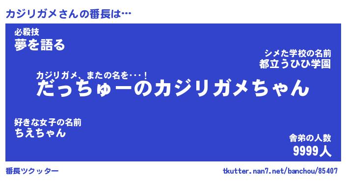 | ヒーロー風カッコイイあだ名 | 『スーパーカジリガメ』『天弓騎士カジ』 |