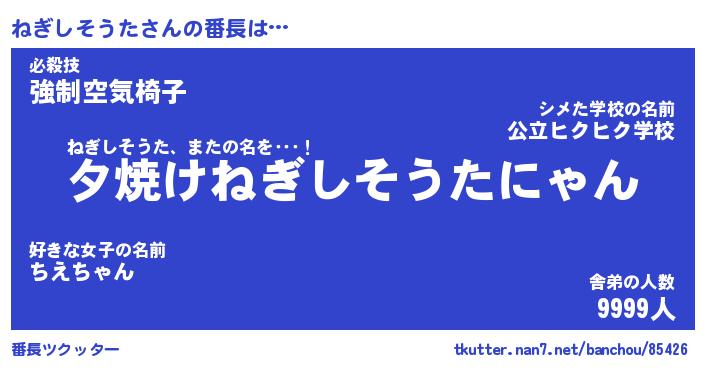 | ヒーロー風カッコイイあだ名 | 『スーパーネギシソウタ』『天弓騎士ネギ』 |